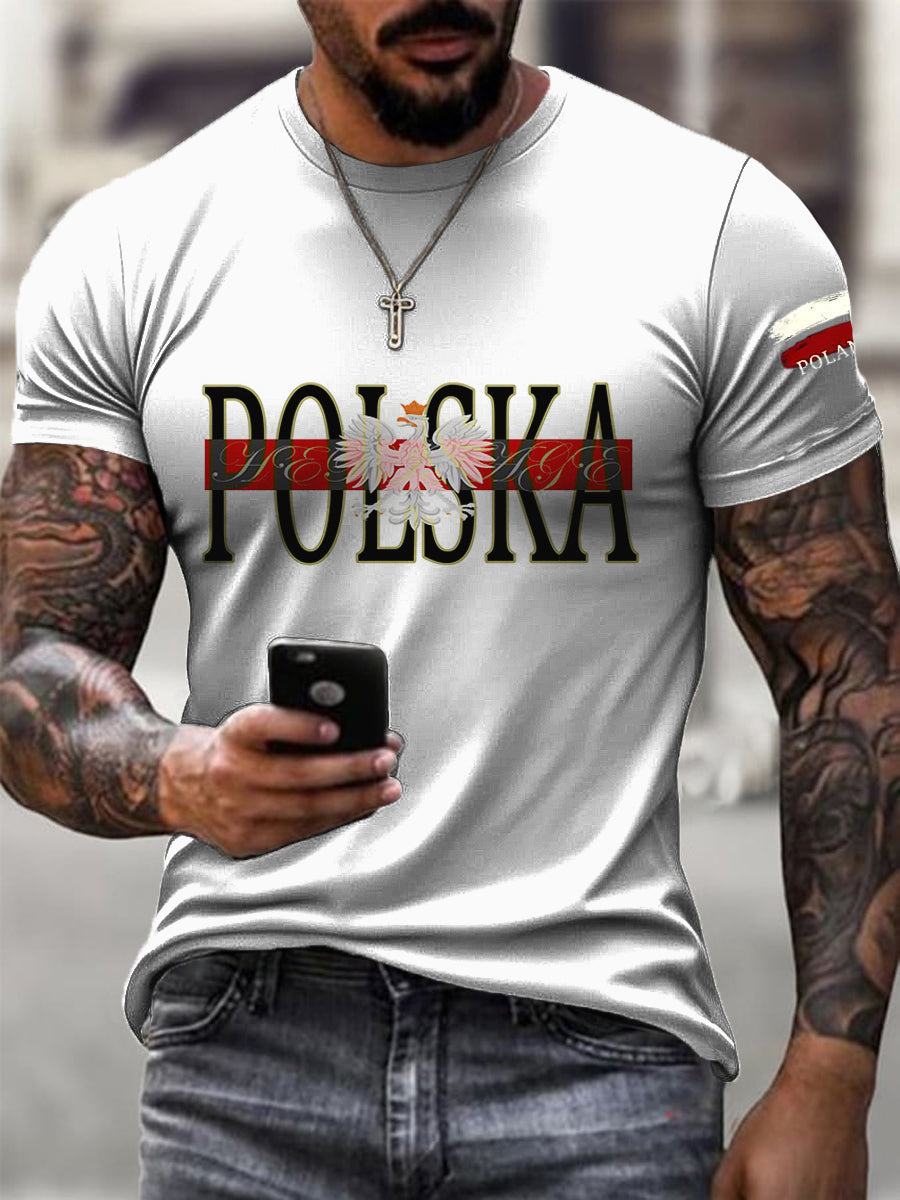 Biały T-shirt codzienny męski list z flagą polską