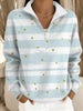 Bluza ze stand-kołnierzykiem damska Fresh Blue - White Stripe & Gold Dot