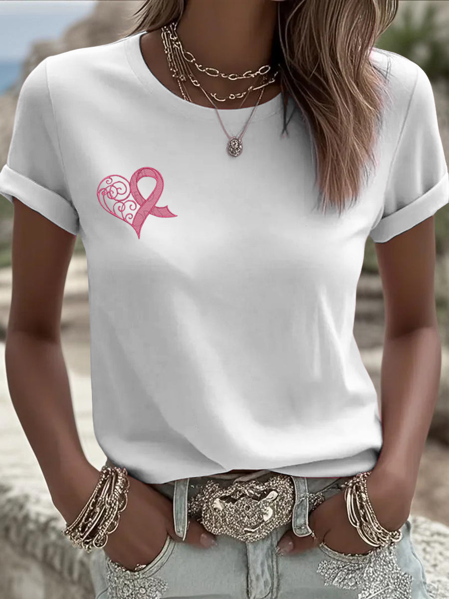 Damska biała minimalistyczna mała etykieta z nadrukiem w kształcie serca z krótkim rękawem