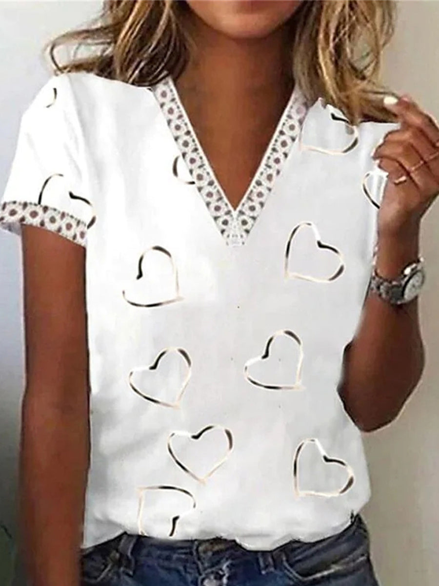Damska casualowa koszulka z krótkim rękawem i koszulką z dekoltem w szpic