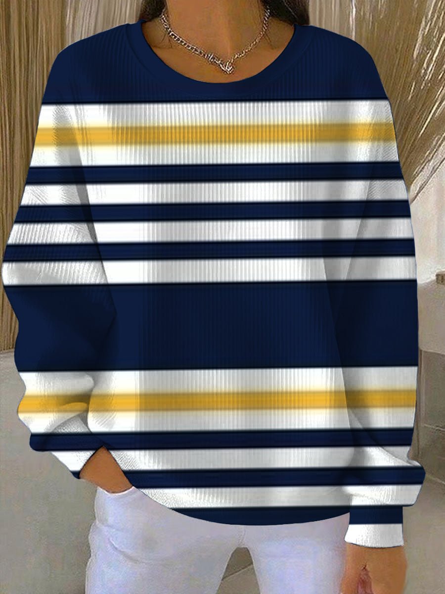 Damska klasyczna granatowa, biała i żółta bluza w paski