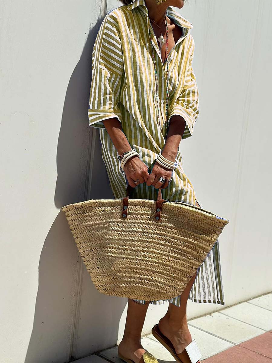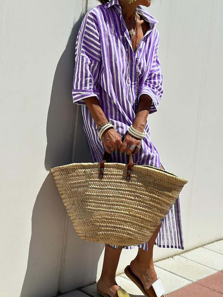 Damska koszula kołnierzyk w paski luźna wakacyjna spódnica maxi