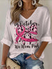 Damska krótka koszulka z motywem raka piersi z dekoltem w szpic
