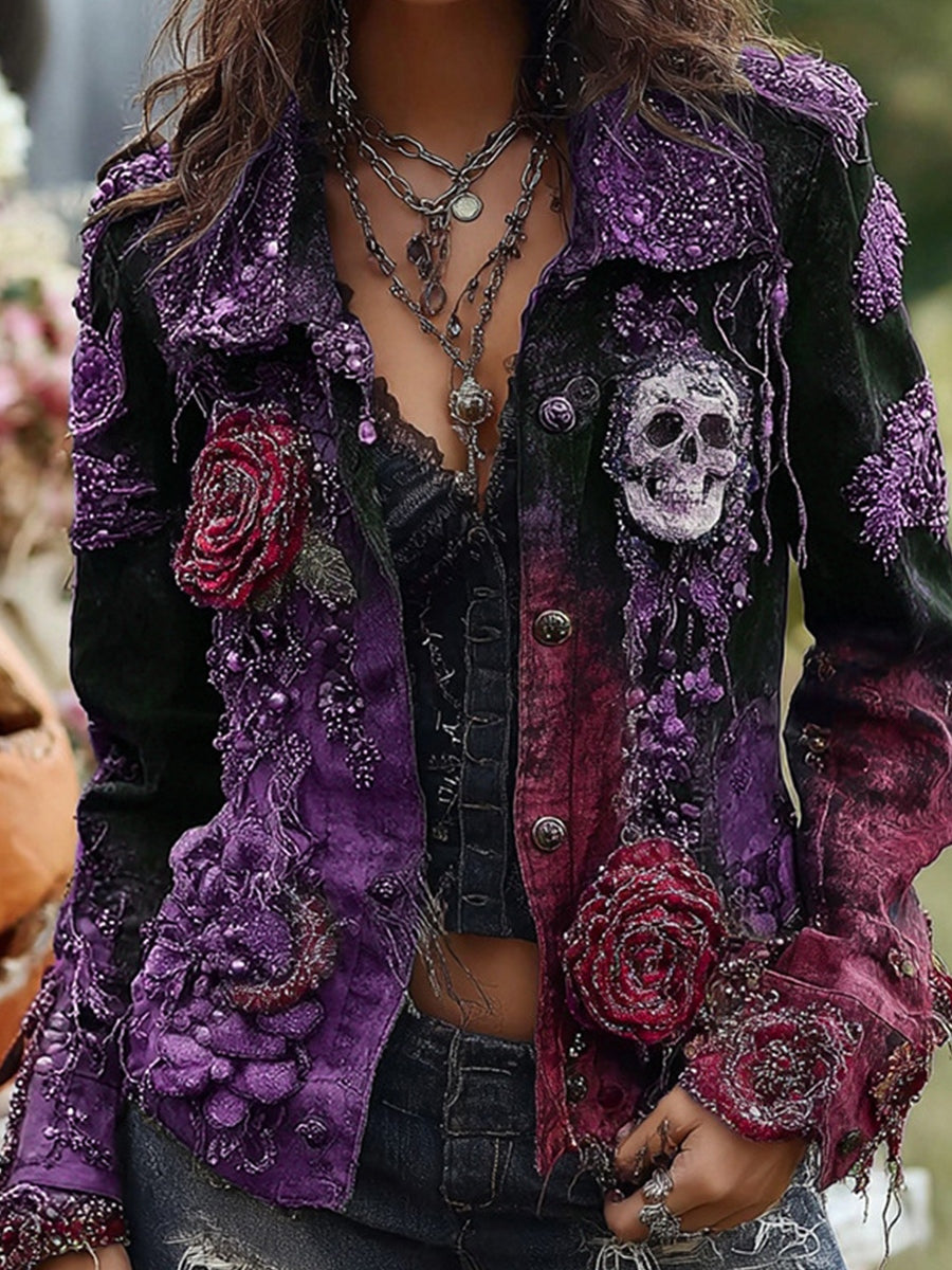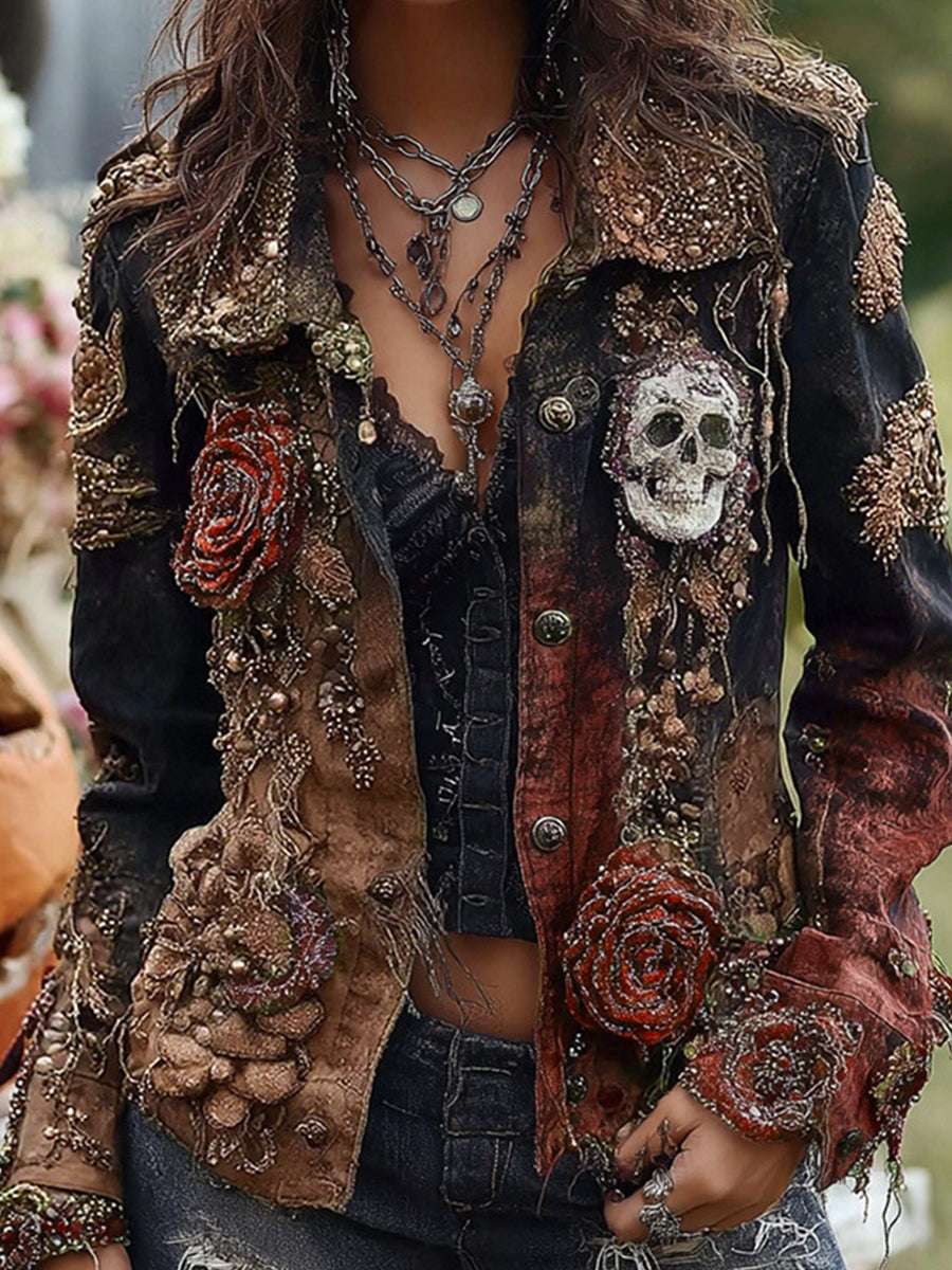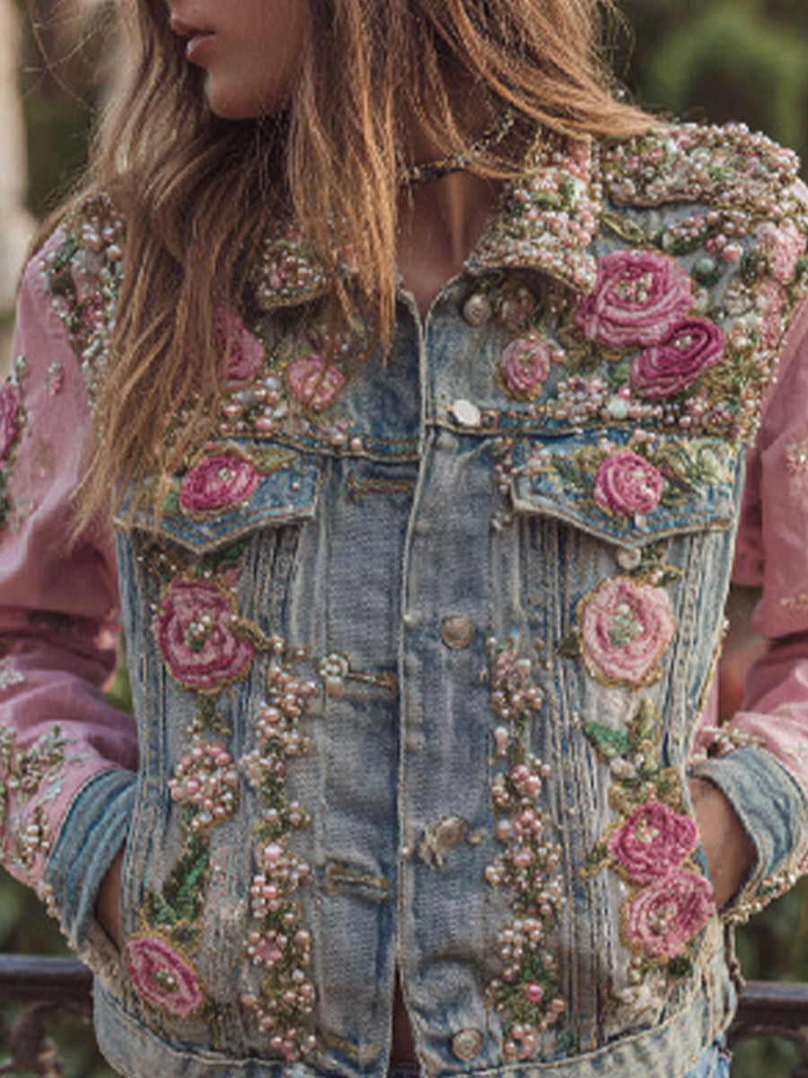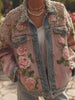 Damska kurtka dżinsowa w stylu vintage w stylu kwiatowym