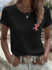 Damska minimalistyczna mała wstążka z nadrukiem swobodna koszula z krótkim rękawem