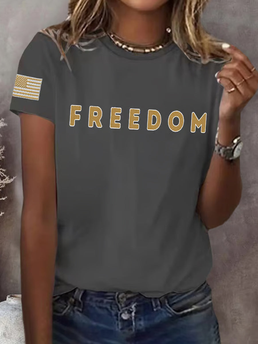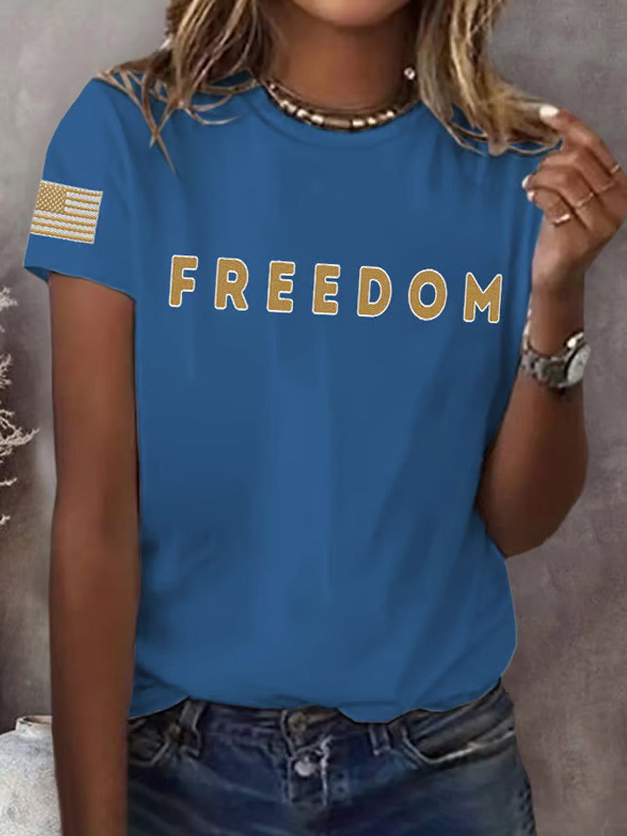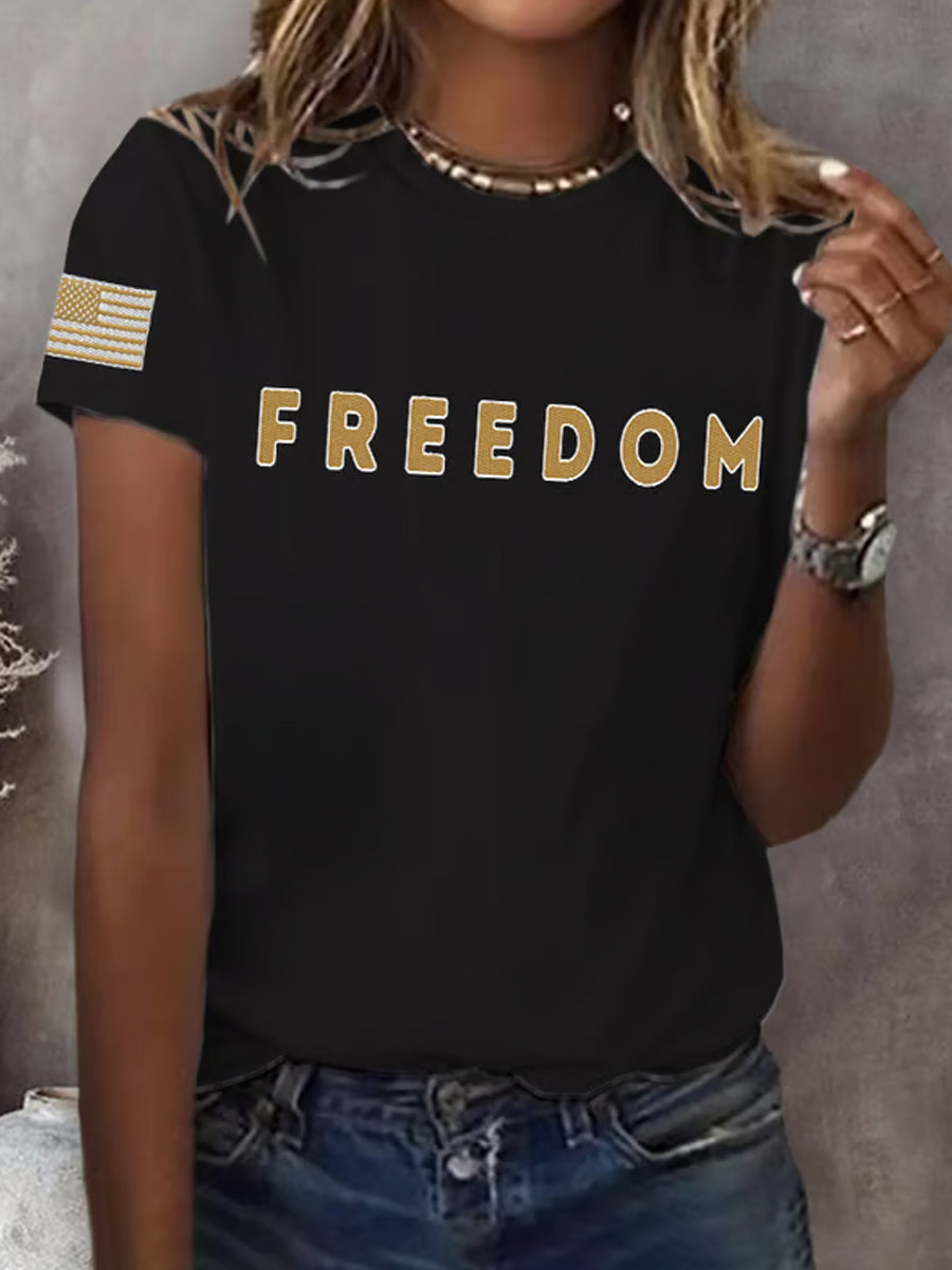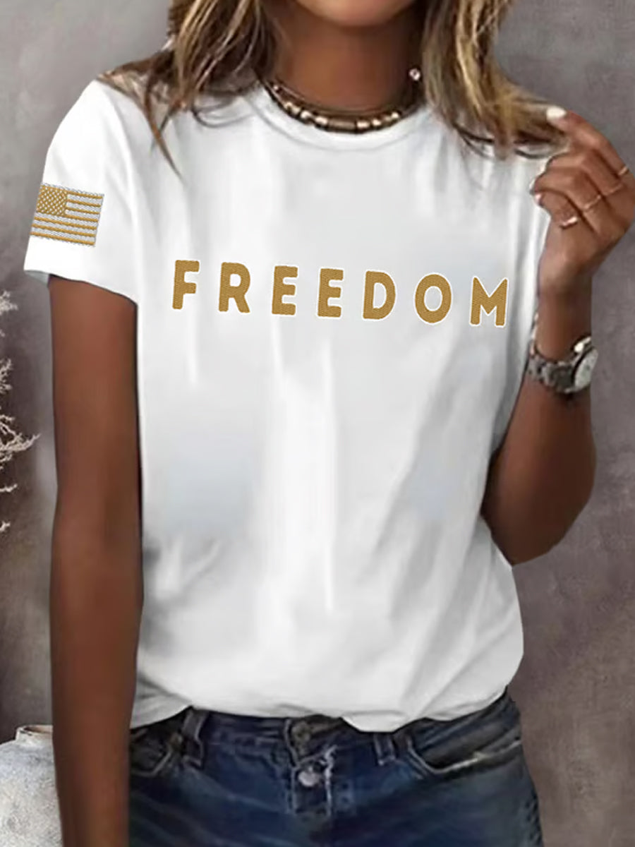 Damska pamiątkowa koszulka z nadrukiem z amerykańską flagą wolności
