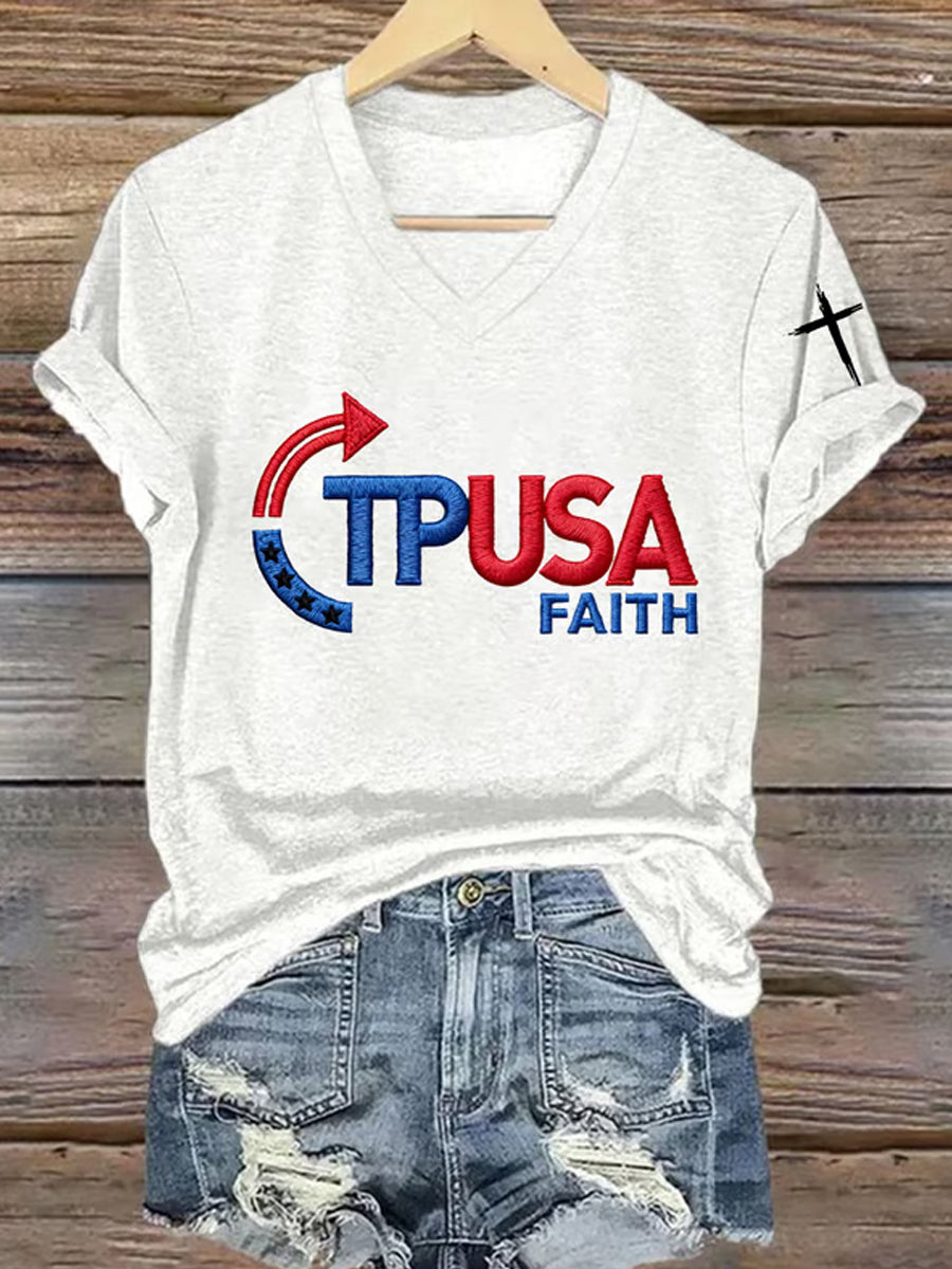 Damska pamiątkowa koszulka z nadrukiem z amerykańską flagą wolności