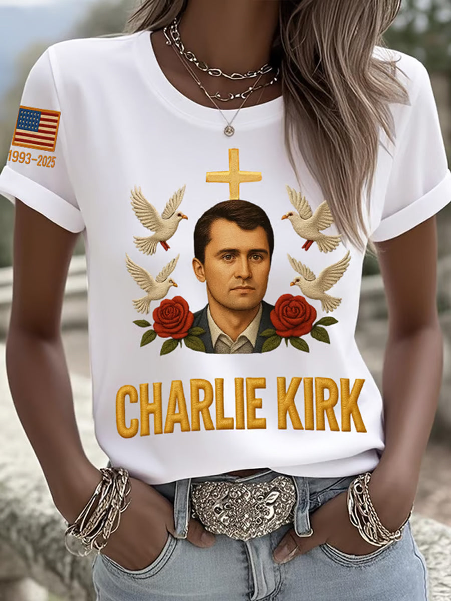 Damska pamiątkowa koszulka z nadrukiem z amerykańską flagą wolności