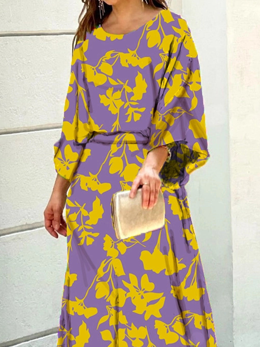 Damska retro kwiatowy nadruk z długim rękawem i wysokim stanem spódnica maxi