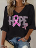 Damska różowa koszula z dekoltem w szpic z długim rękawem w panterkę