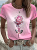 Damska różowa wstążka Rhinestone Casual T-Shirt
