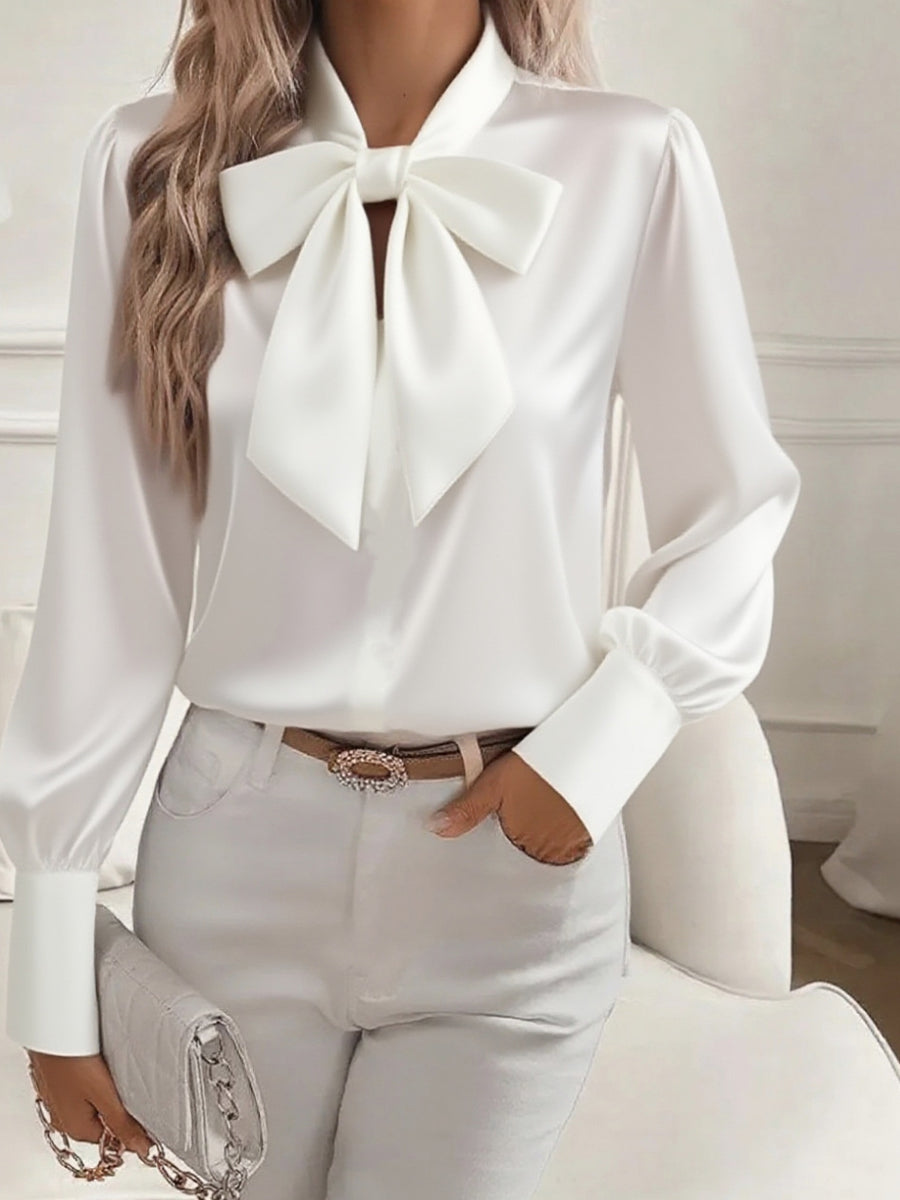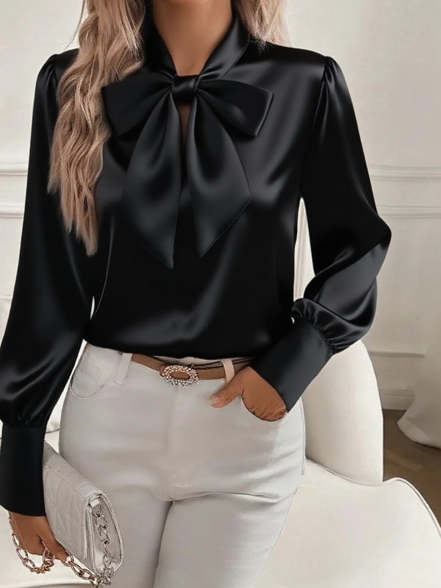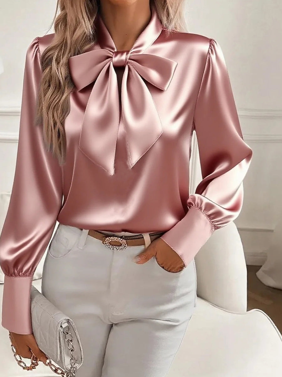 Damska satynowa bluzka z długim rękawem w stylu retro