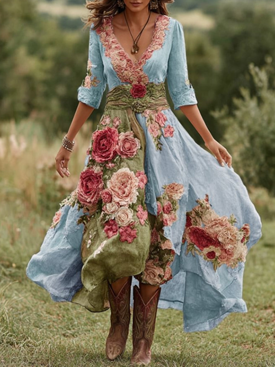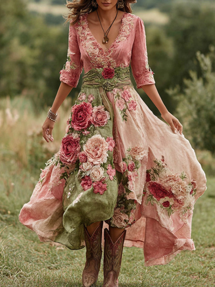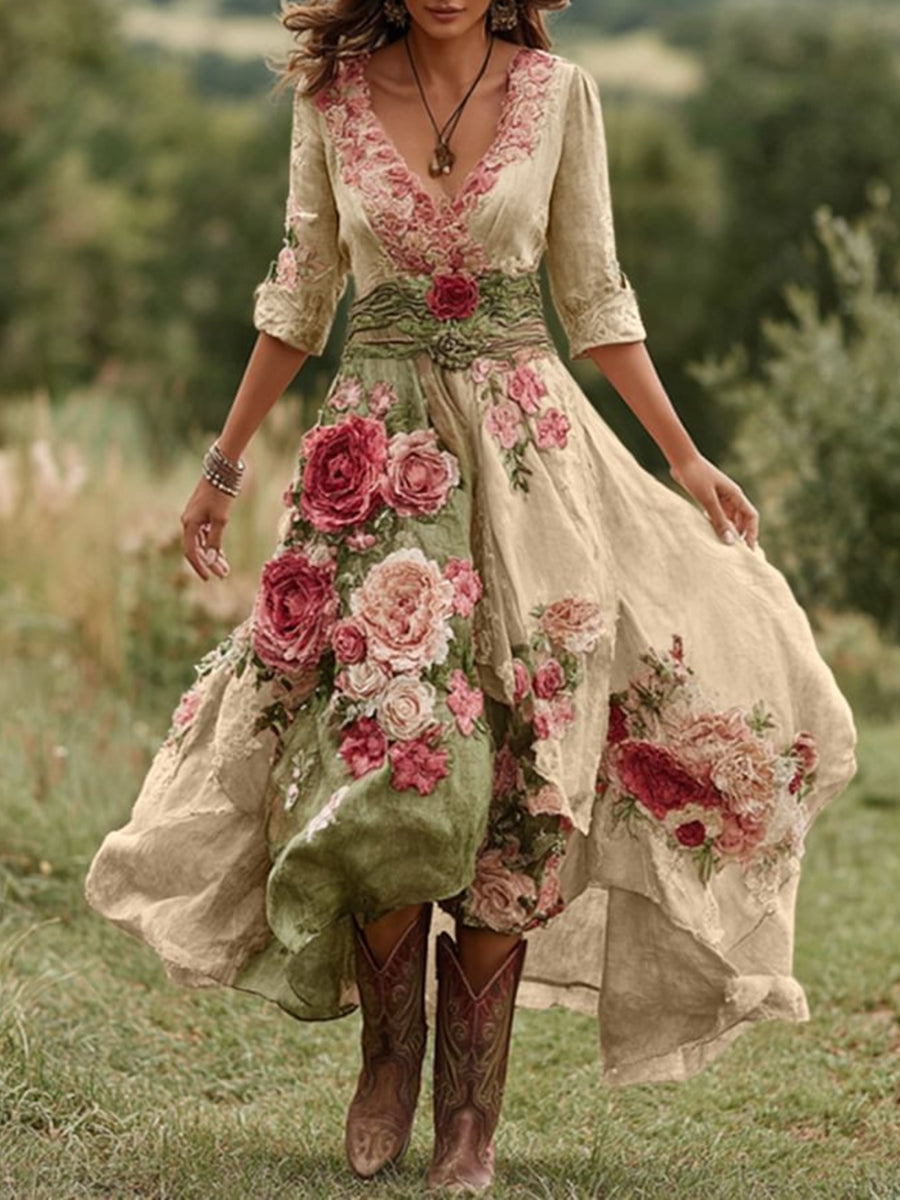 Damska sukienka midi w kwiaty w stylu vintage