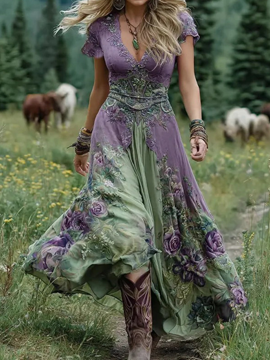 Retro Western Highway tekstura wzór z nadrukiem Village V-Neck Koszula z długim rękawem w stylu Henry