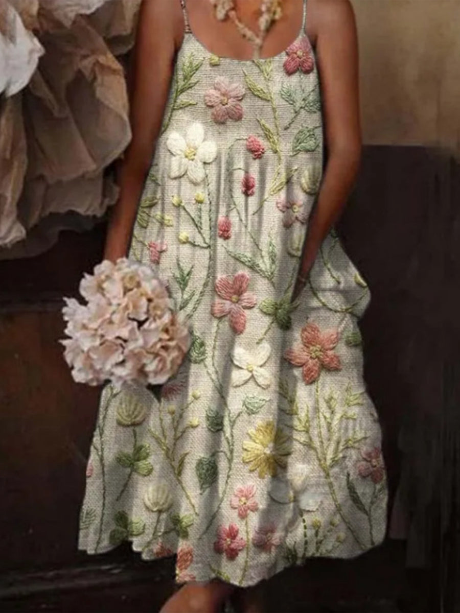 Damska sukienka w stylu kwiatowym z nadrukiem na co dzień z paskiem