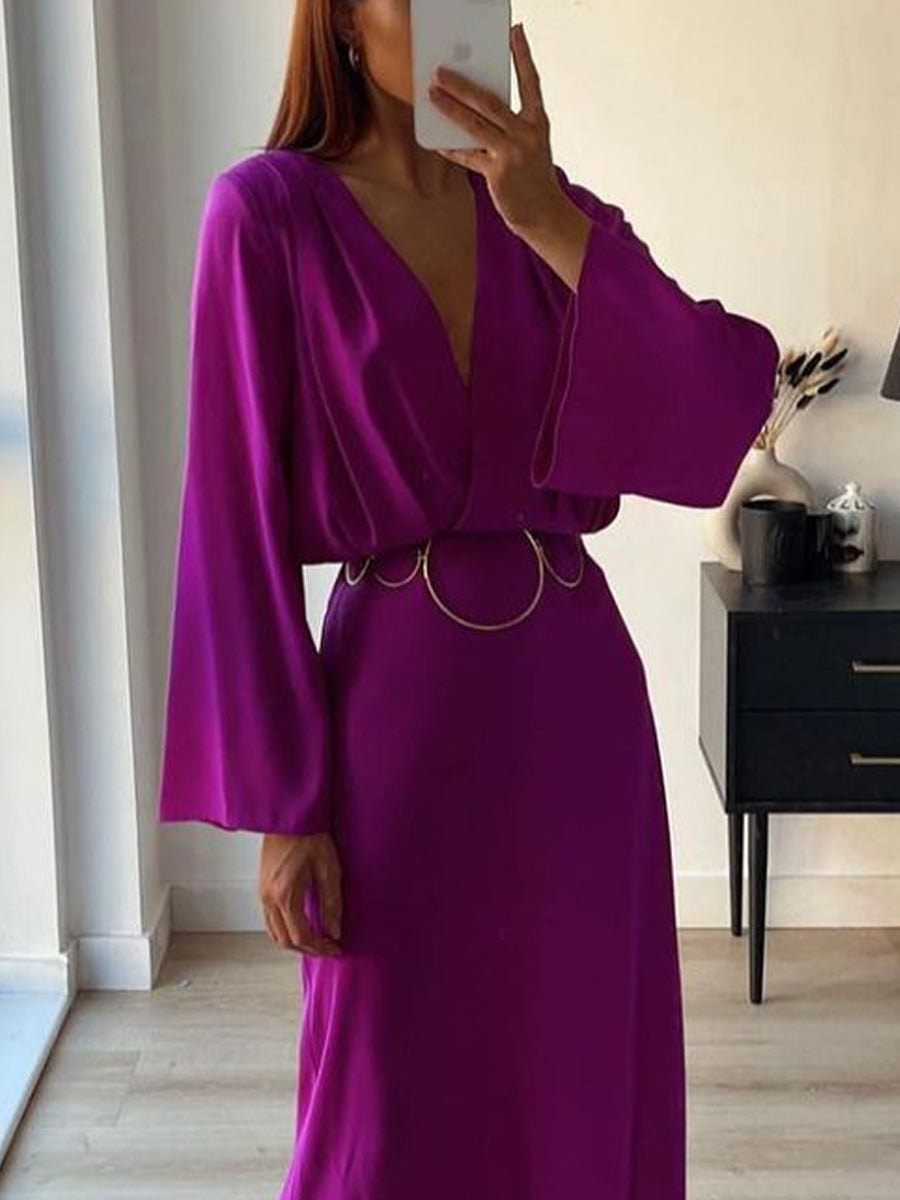 Damska sukienka z dekoltem w szpic w kolorze fioletowym w kolorze retro