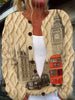 Damska świąteczna kurtka w stylu vintage w stylu Art Print Przytulny sweter