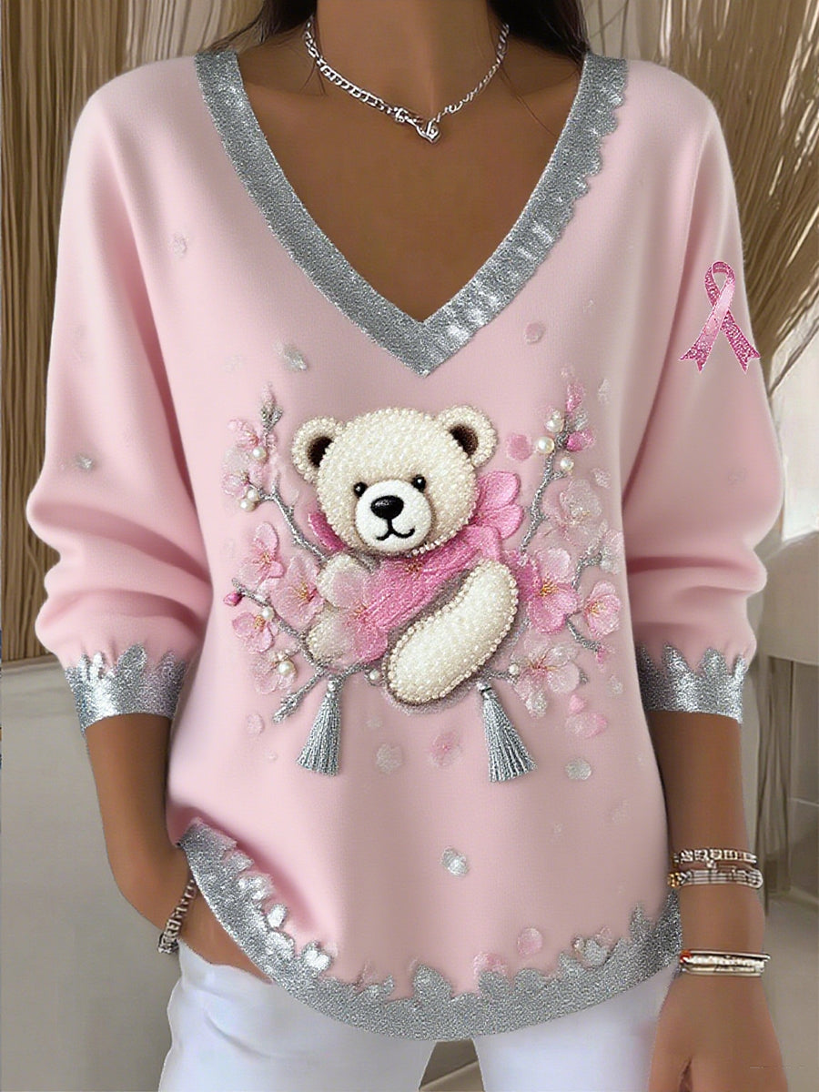 Damska wstążka z rakiem piersi bawełniana koszulka z długim rękawem w zwierzęcy wzór