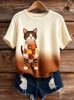 Damski artystyczny nadruk zwierzęcy wygodny top z dzianiny z krótkim rękawem
