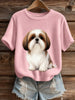 Damski artystyczny nadruk zwierzęcy wygodny top z dzianiny z krótkim rękawem