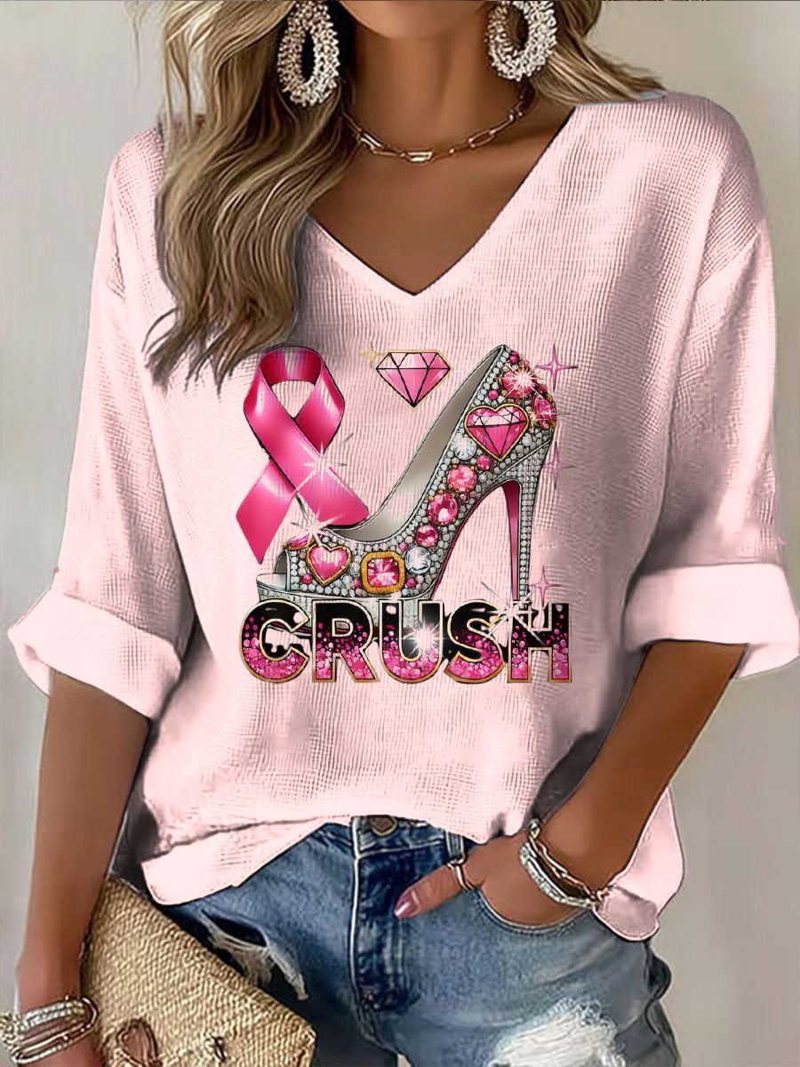 Damski dekolt w serek z długim rękawem na wysokim obcasie wzór butów