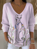 Retro Western Highway tekstura wzór z nadrukiem Village V-Neck Koszula z długim rękawem w stylu Henry