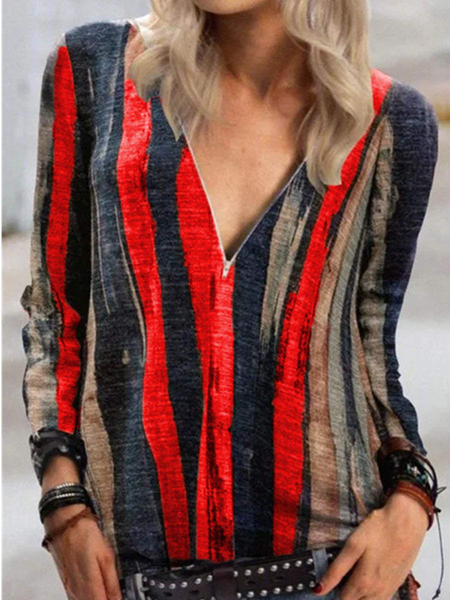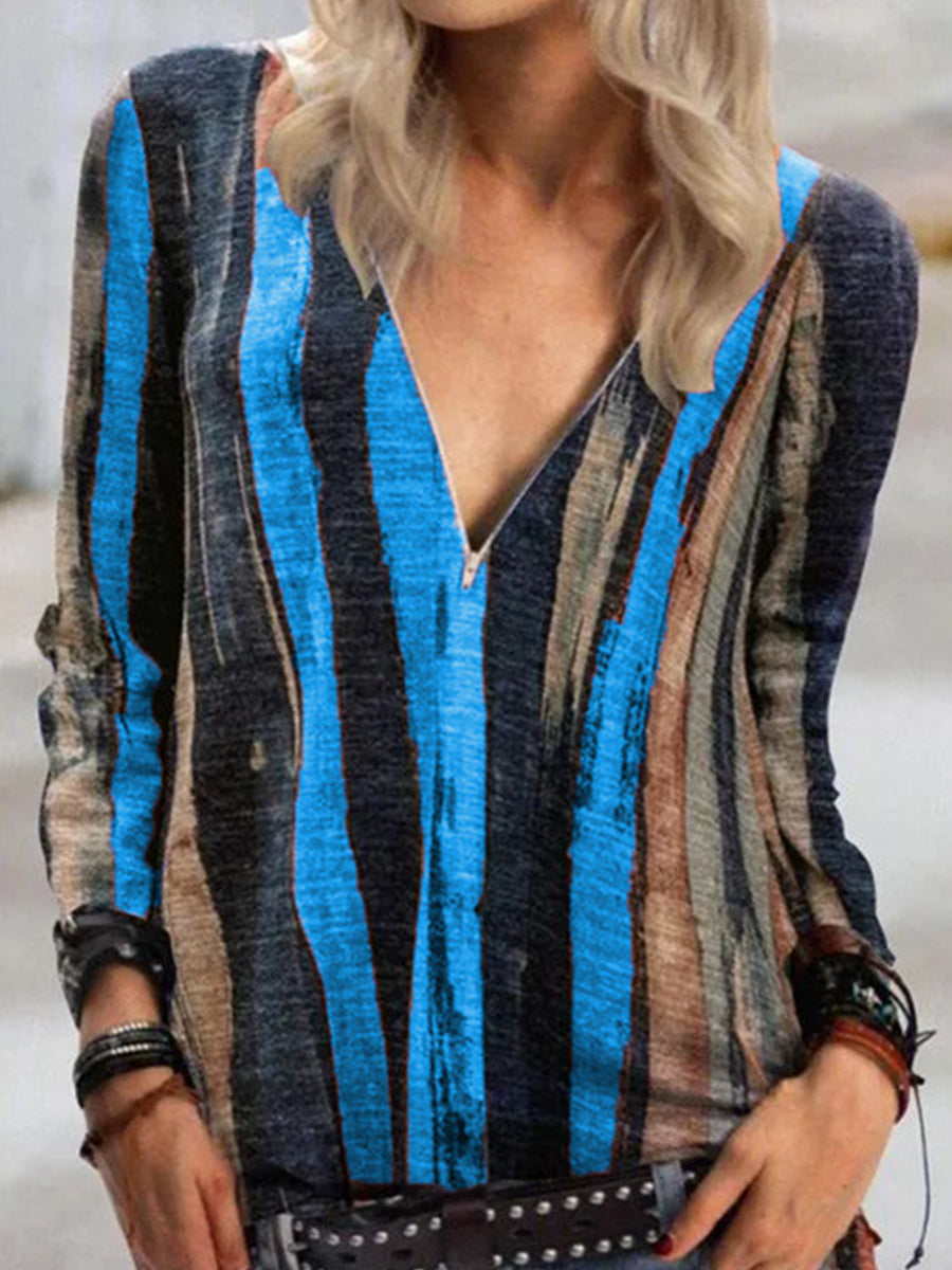 Damski dorywczo T-shirt z długim rękawem Tie Barwnik w paski