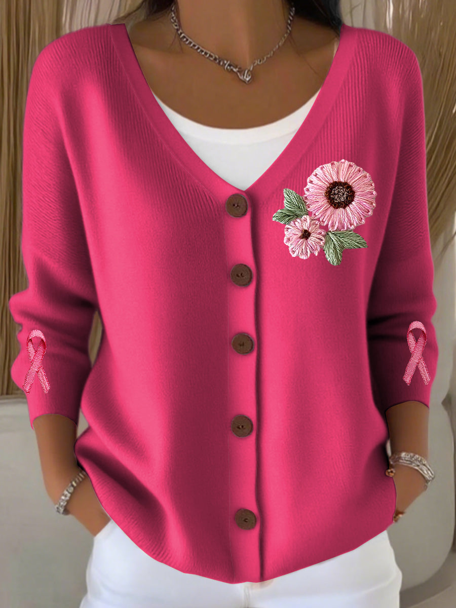 Damski kardigan z dzianiny w stylu vintage z kwiatowym dekoltem w szpic