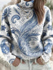 Damski niebieski i biały tradycyjny sweter golfowy z nadrukiem