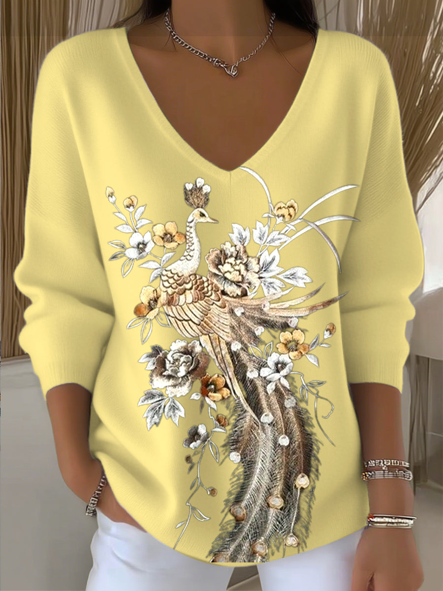 Retro Western Highway tekstura wzór z nadrukiem Village V-Neck Koszula z długim rękawem w stylu Henry