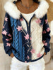 Damski retro kwiatowy wygodny pluszowy sweter z kapturem