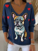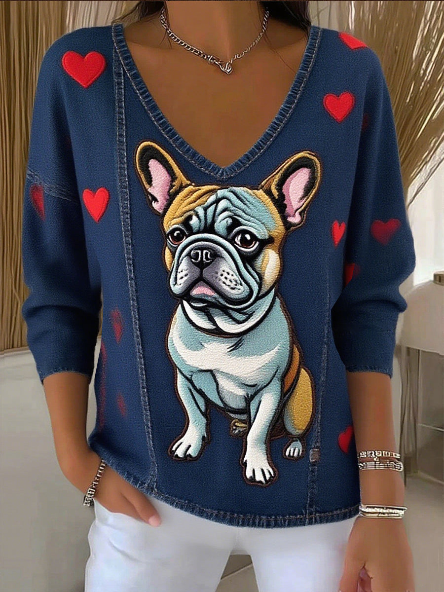 Damski retro zwierzęcy nadruk casualowy top z długim rękawem