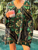 Retro Western Highway tekstura wzór z nadrukiem Village V-Neck Koszula z długim rękawem w stylu Henry