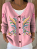 Damski sweter z dzianiny w stylu vintage, symetryczny z kwiatowym dekoltem w szpic