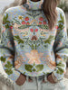 Damski vintage etniczny symetryczny kwiatowy sweter z wysokim dekoltem