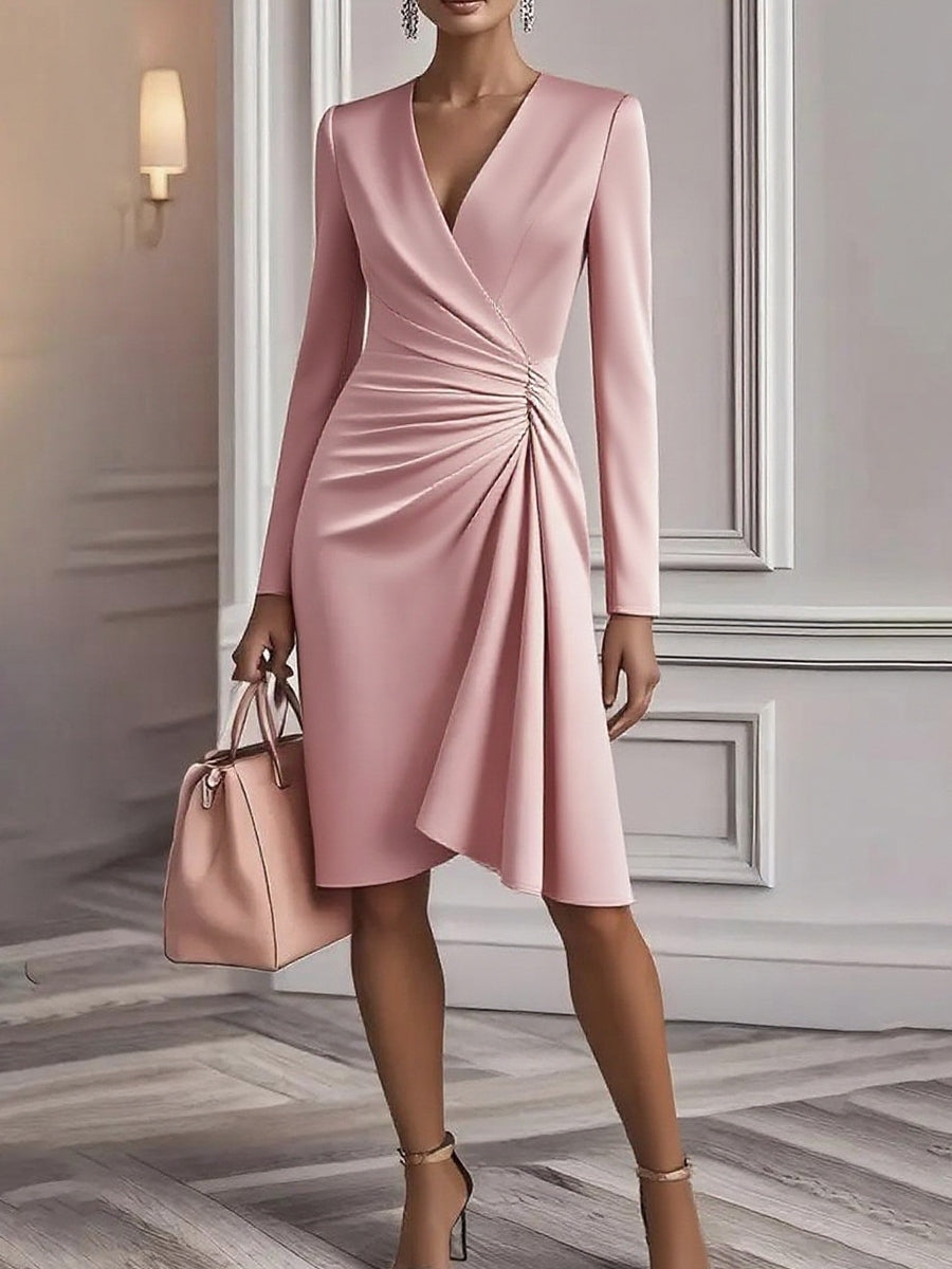 Damska sukienka z długim rękawem w kolorze retro z dekoltem w szpic