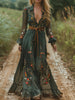 Retro Western Highway tekstura wzór z nadrukiem Village V-Neck Koszula z długim rękawem w stylu Henry