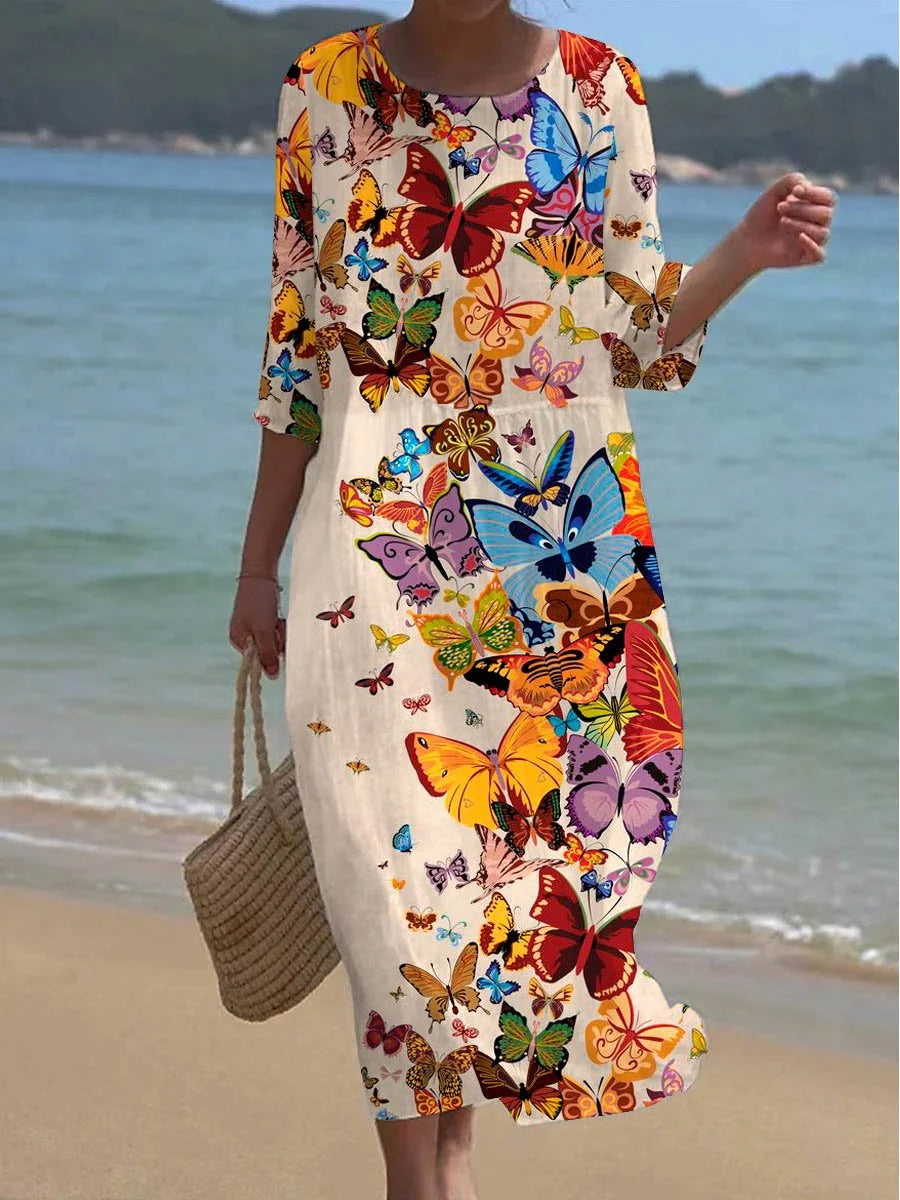 Damska sukienka z okrągłym dekoltem w kwiaty z nadrukiem temperamentu