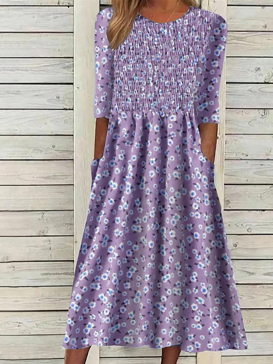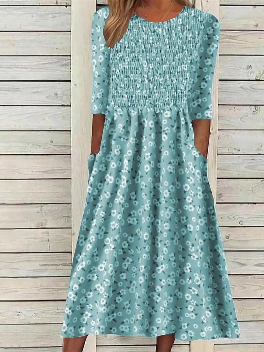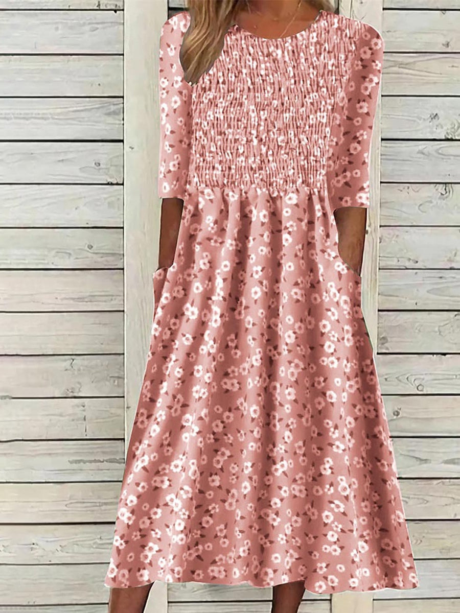 Damska kolorowa sukienka z krótkim rękawem w stylu retro w kwiatowy wzór w talii
