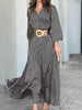 Damska sukienka z długim rękawem w stylu retro w kwiaty z dekoltem w szpic