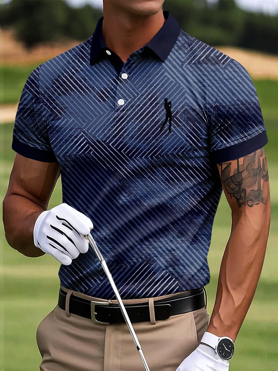 Męska koszulka golfowa, abstrakcyjny geometryczny patchworkowy nadruk artystyczny, koszulka biznesowa na co dzień