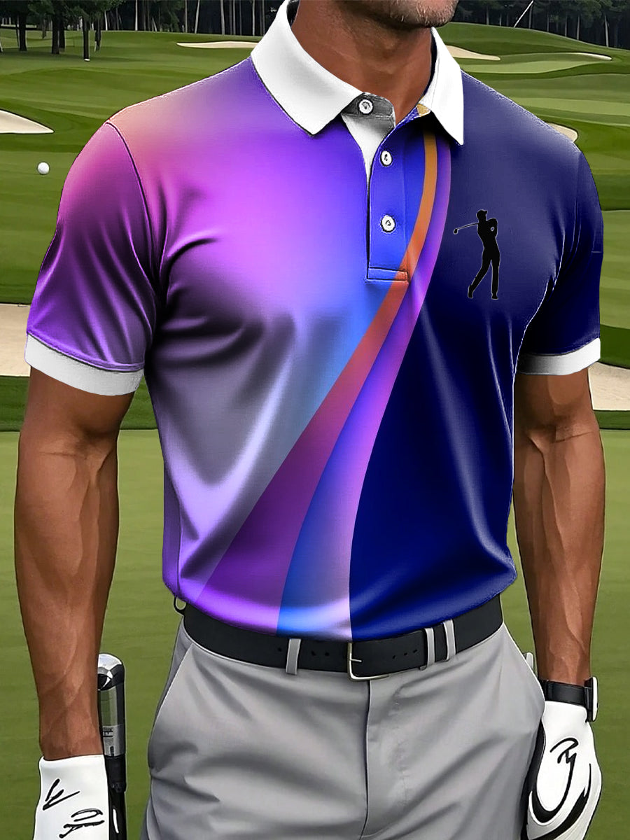 Męska koszulka polo z nadrukiem artystycznym w stylu retro z gradientu w kolorze retro