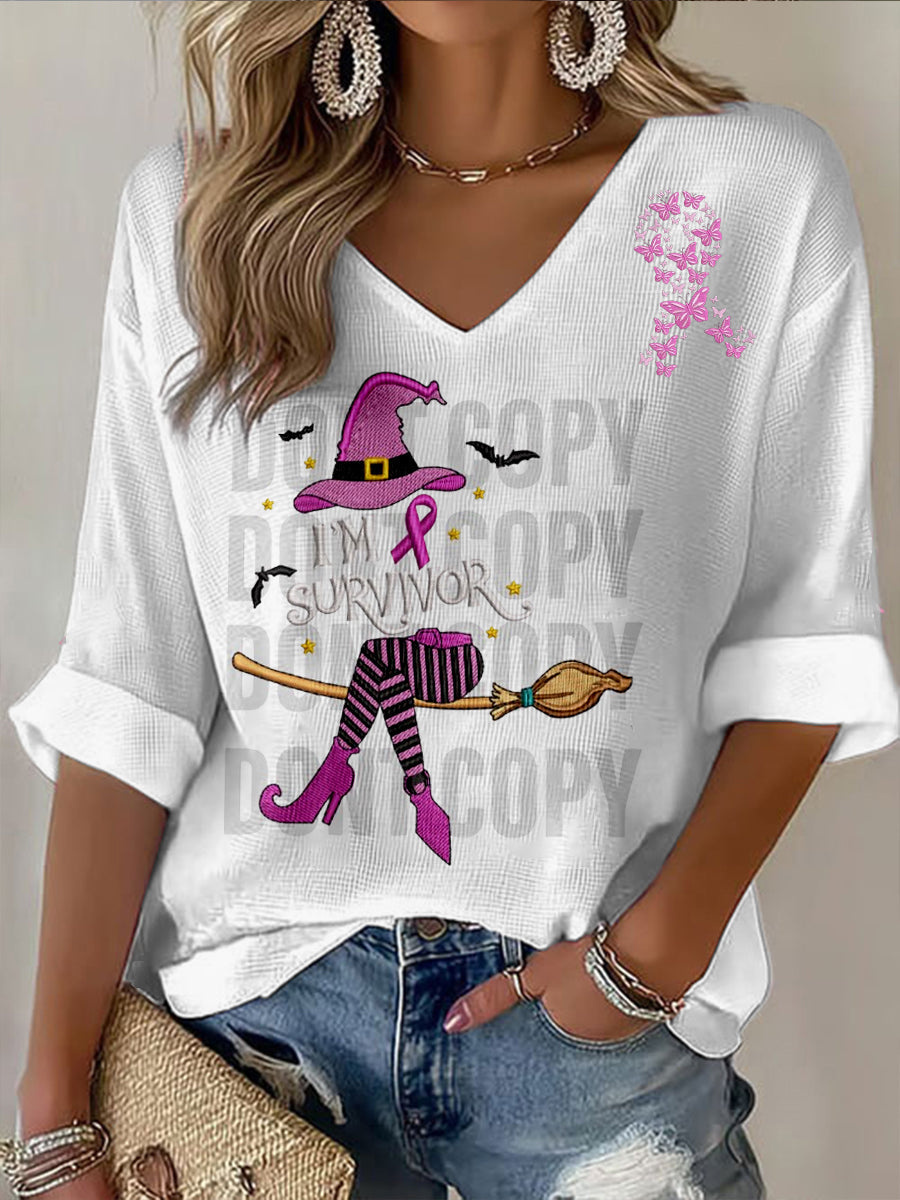 Halloweenowa czarownica damska z dekoltem w szpic Casual krótka koszulka