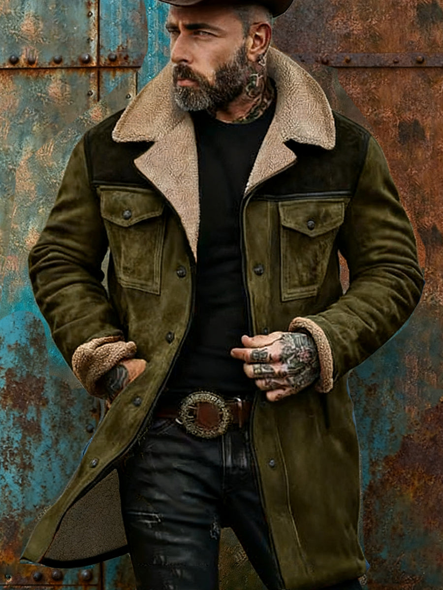 Męska kurtka zamszowa w stylu vintage Colorblock Płaszcz Amazon Multi-Pocket Zipper