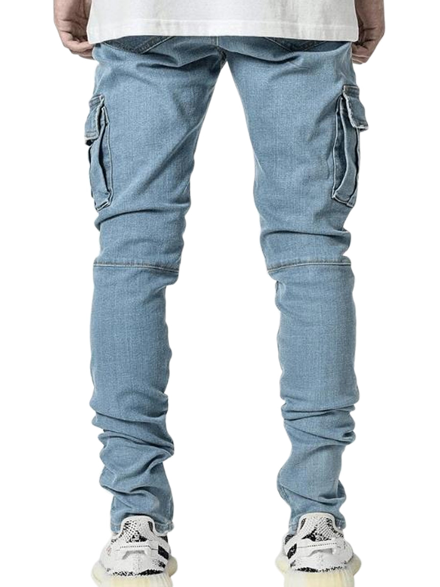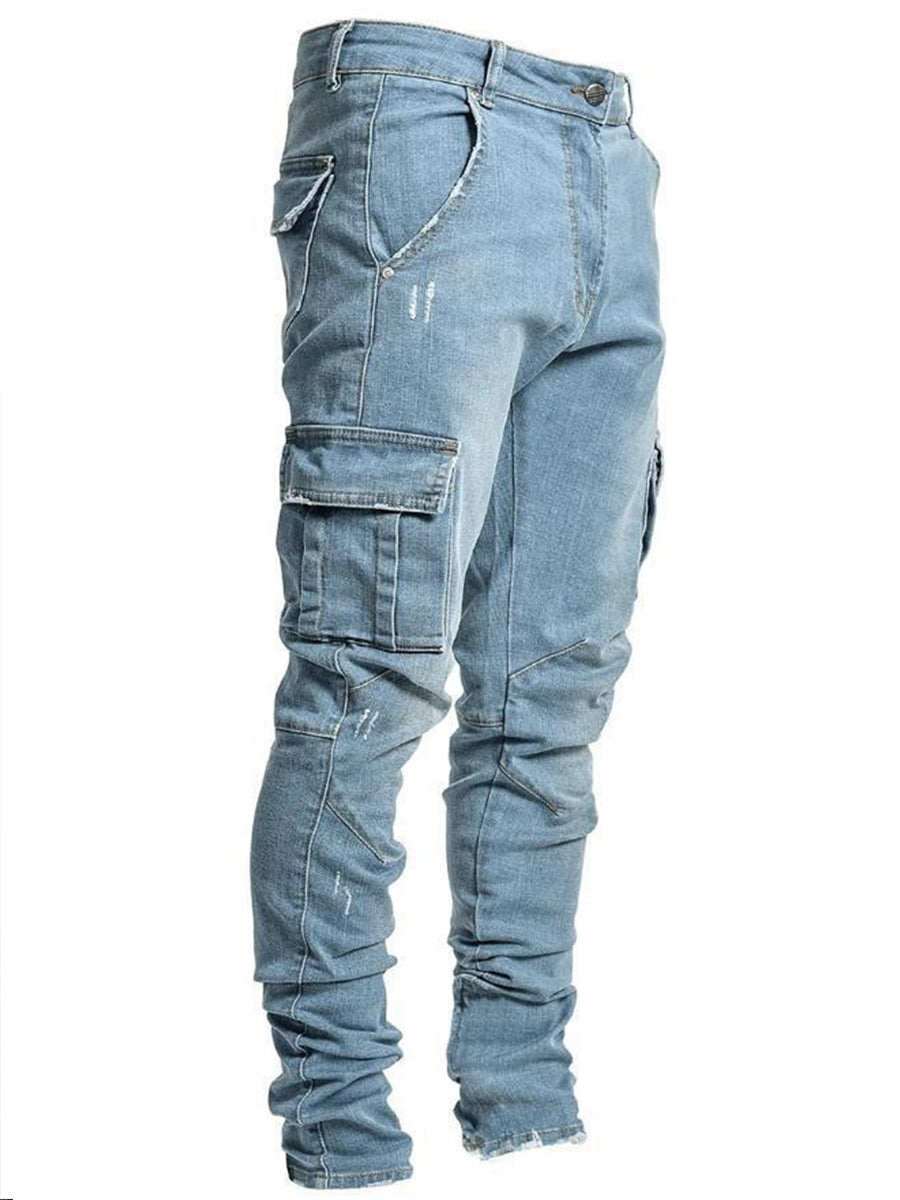 Modne dżinsy typu splicing z długimi kieszonkami i długimi nogami
