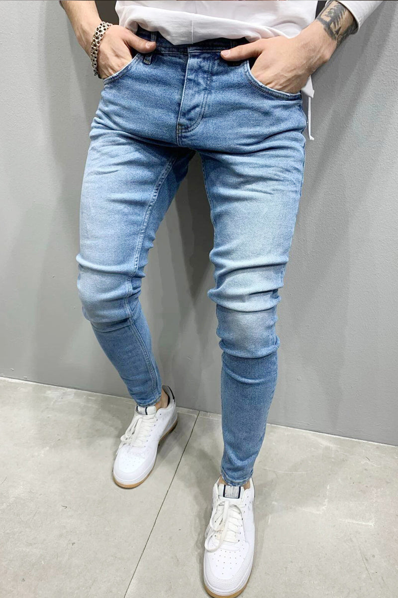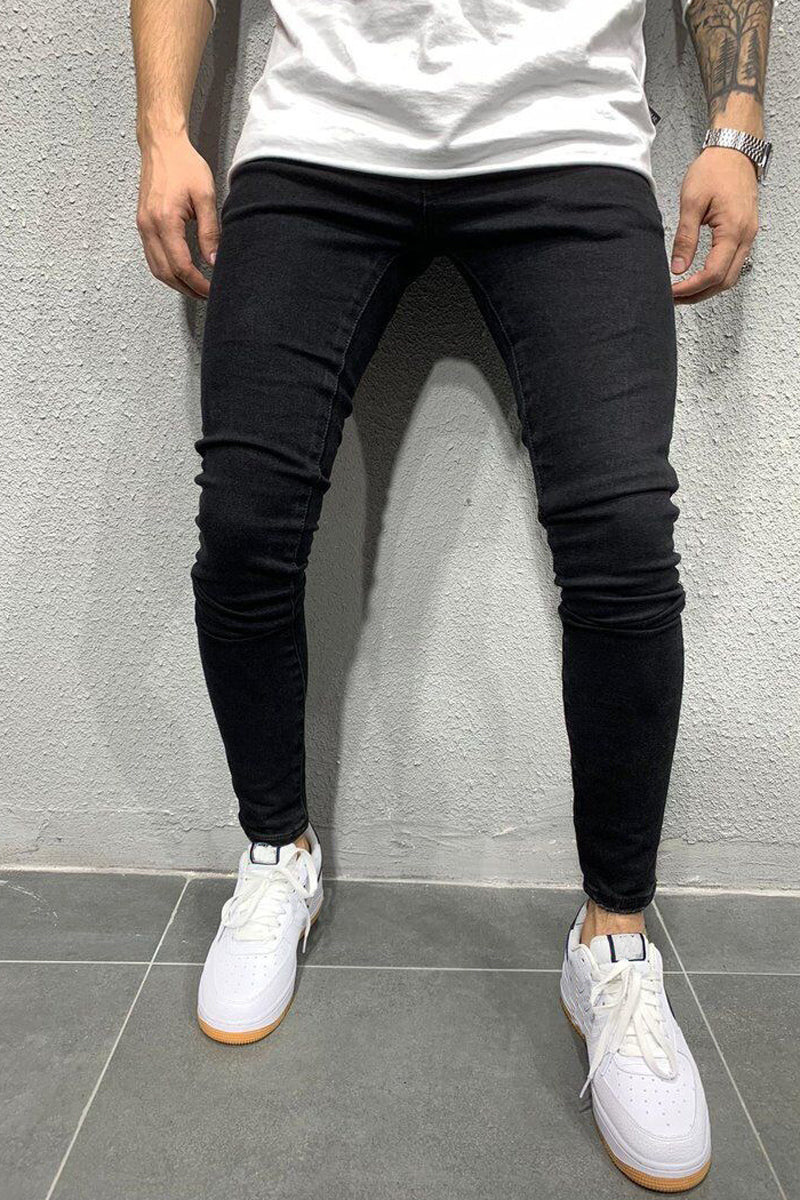 Męskie nieformalne, elastyczne dżinsy w jednolitym kolorze