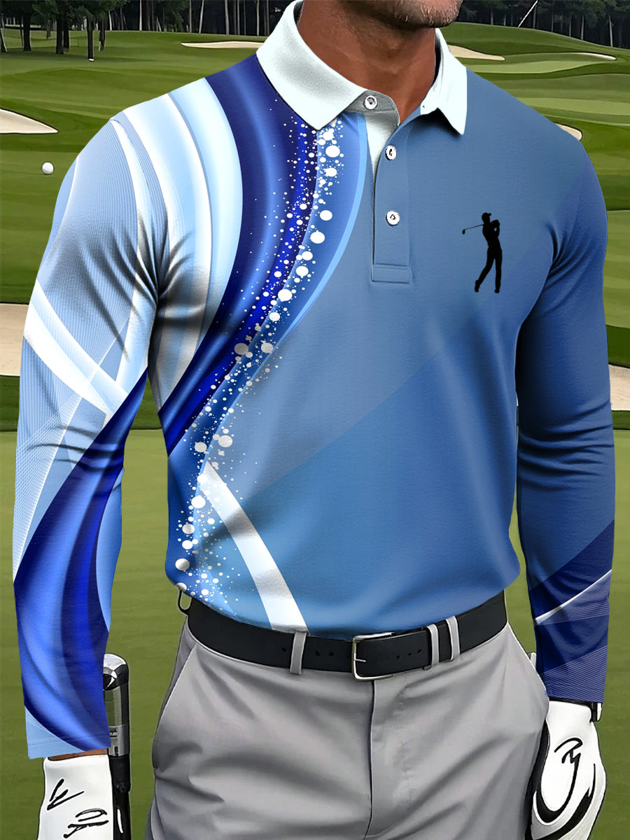Męska abstrakcyjna linia Wave Art Print Casual Business Koszulka polo z długim rękawem