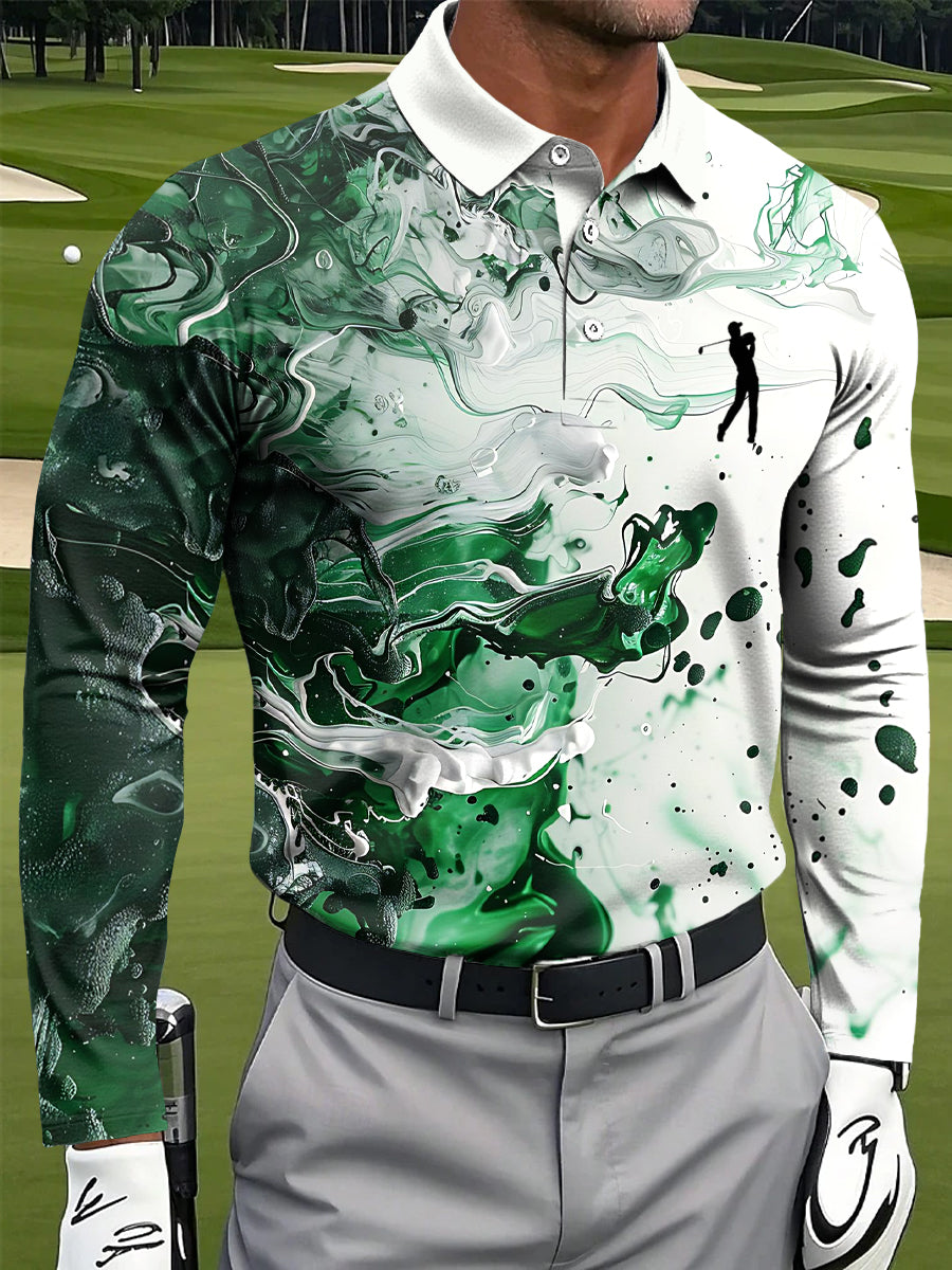 Męska abstrakcyjna marmurowa tekstura artystyczna drukowana na co dzień biznesowa koszulka polo z długim rękawem
