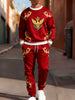 Męska bluza z dekoltem i spodnie w stylu retro w stylu biznesowym z nadrukiem w stylu koronnym, na co dzień, 2-częściowy zestaw