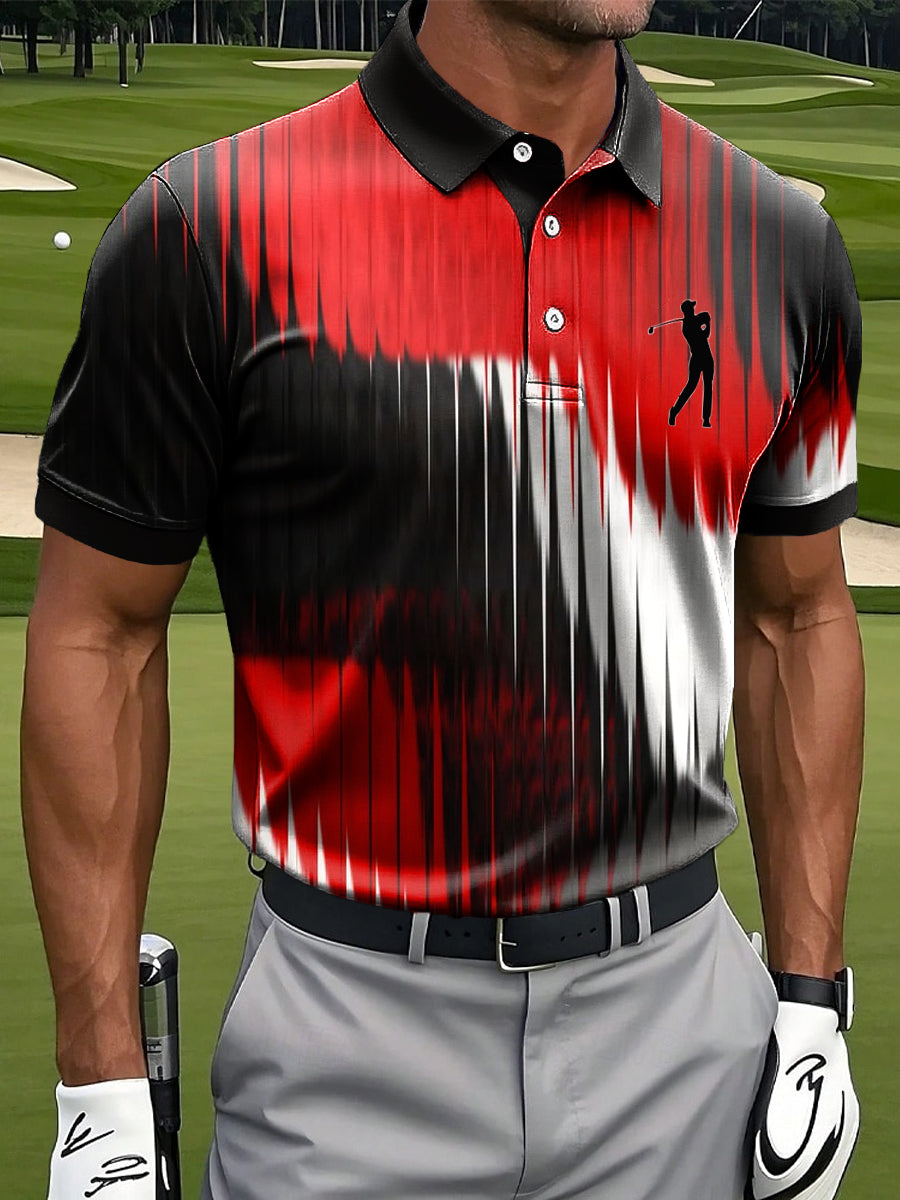 Męska koszulka polo biznesowa z nadrukiem w paski w stylu retro